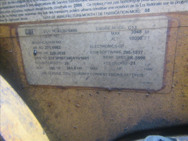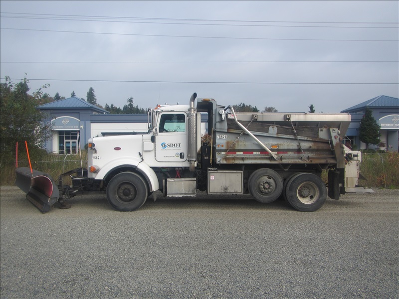 T/A DUMP TRUCK, 11' STEEL BOX, TARP SYSTEM, TAILGATE, HENKE SNOW PLOW, SWENSON SPREADER, LOADMAN SCALE, CAT C13 ACERT, AIR SUSPENTION, 187" W/B, 16,000 LB FRONT, 20,000 LB REARS, DROP AXLE