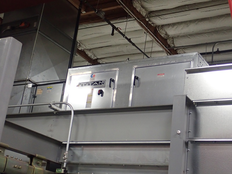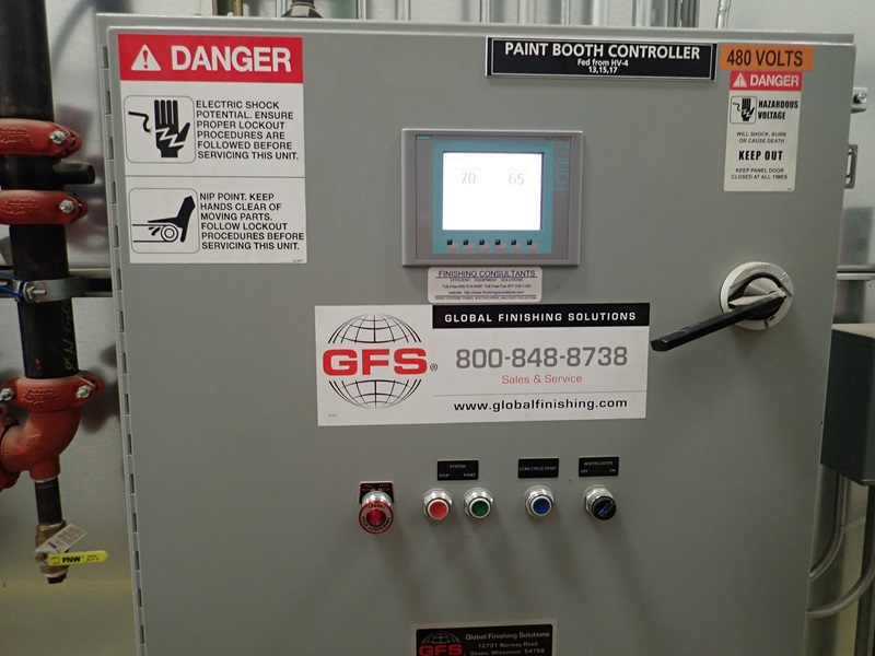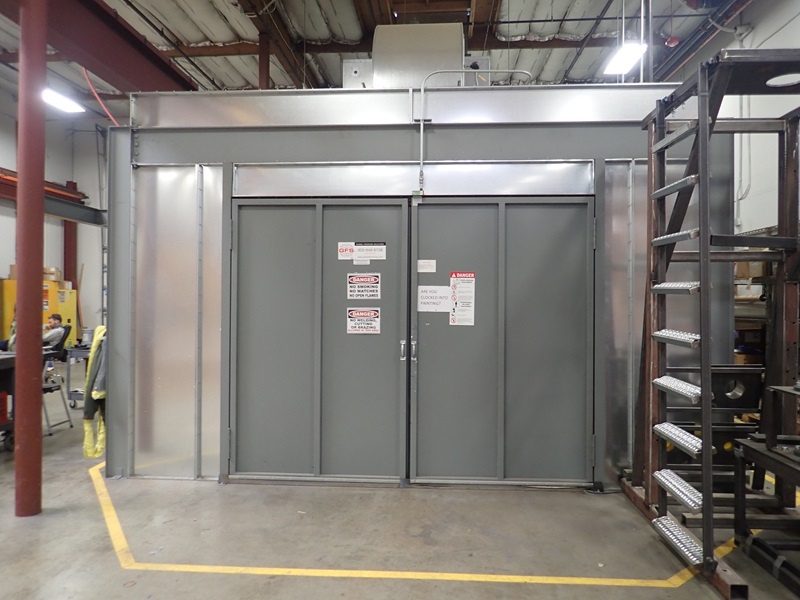 APPROX. 16'X25'X9 SPRAY BOOTH, TITAN AIR GAS FIRED MAKEUP AIR SYSTEM, 12,000 LB RAIL SYSTEM, FRONT DOOR, (2) SIDE DOORS, LIGHTS, SIEMENS SIMATIC CONTROLS, S/N: U57146-A