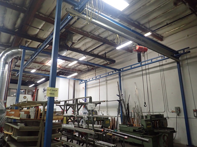 APPROX. 24'X35'X15' 2,000 LB CAP. BOLT TOGETHER STEEL OVERHEAD CRANE W/CM LOADSTAR 1-TON CHAIN HOIST