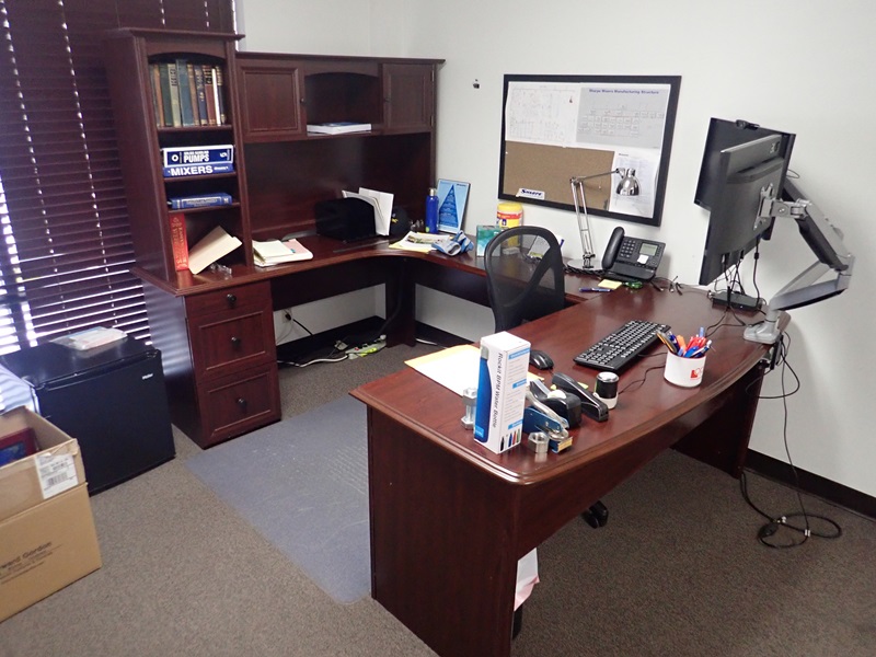 GROUP OF DESKS, CONFERENCE ROOM, BREAK ROOM, TELEVISIONS & ASSORTED OFFICE SUPPLIES (COMPUTERS, PRINTERS, PHONES)