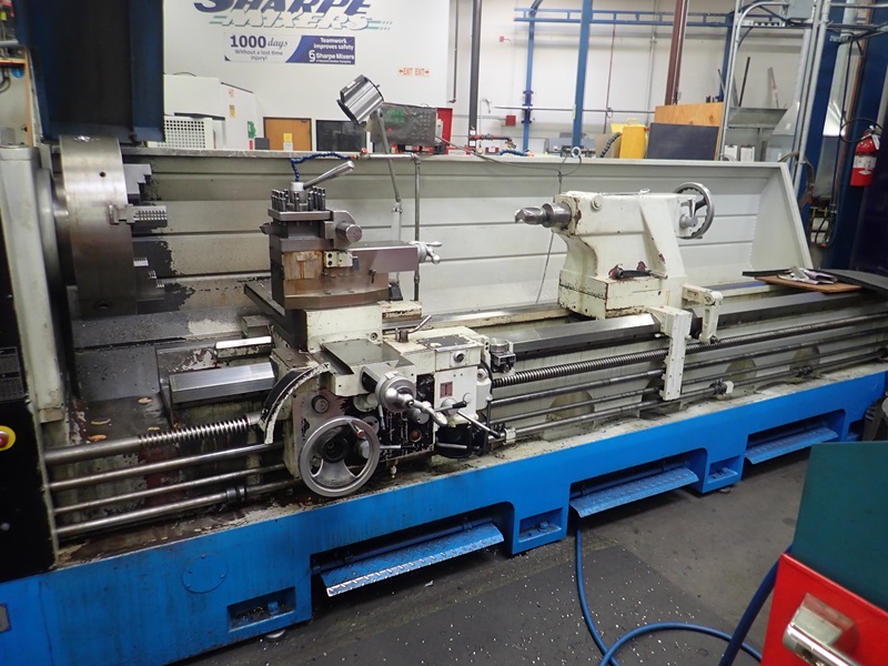APPROX. 32"X120" ENGINE LATHE, 3-JAW CHUCK, 6" THRU SPINDLE, TOOL POST, TAILSTOCK, (2) STEADY RESTS, DRO PROS DIGITAL READOUT, S/N: 21303