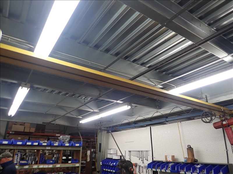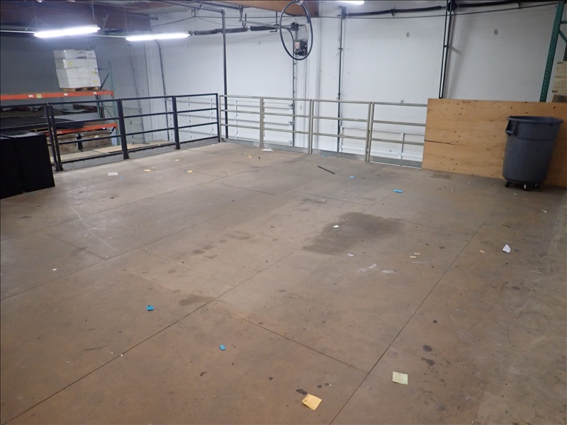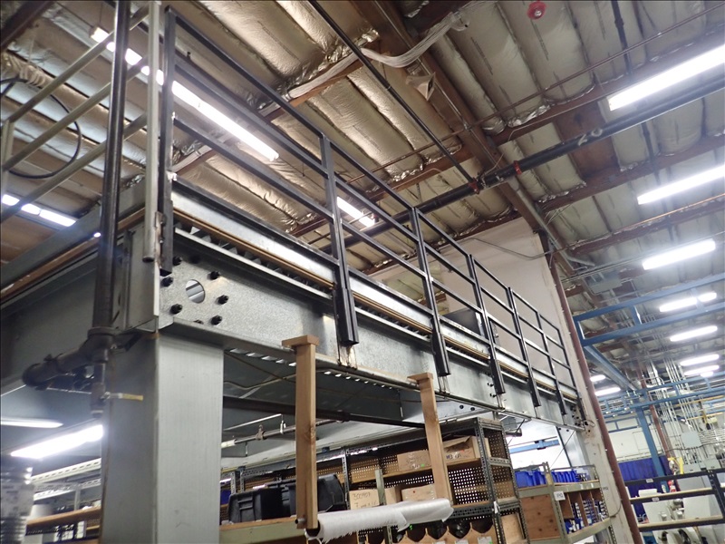 APPROX 24’X24’X10’ BOLT TOGETHER GALVANIZED MEZZANINE W/ 13’ 500LB CAP OVERHEAD CRANE, DAYTON CHAIN HOIST, LIGHTS, WOOD FLOOR, REMOVABLE RAILING