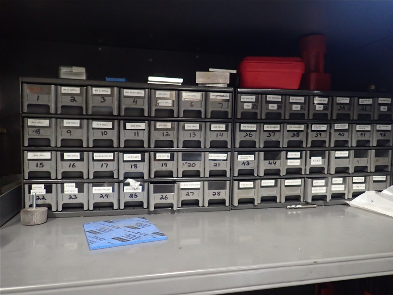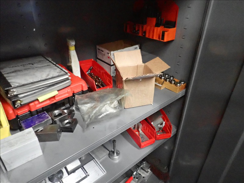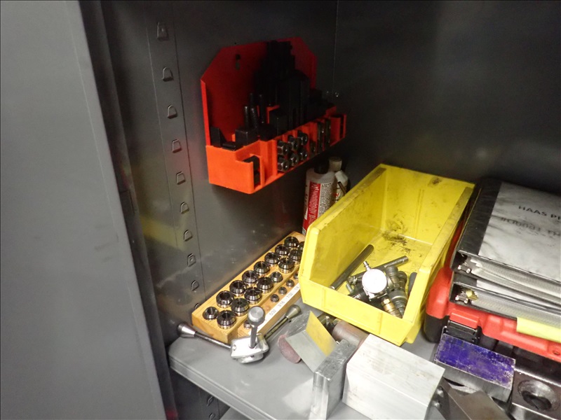 2-DOOR TOOLING CABINET W/COLLETS, HOLD DOWNS, DRILL & ASSORTED TOOLING SUPPLIES