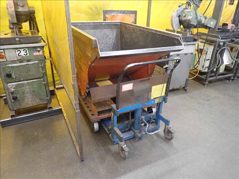 (2) BISHAMON SCISSOR LIFT CARTS, STEEL TABLE, CARTS & MISC.