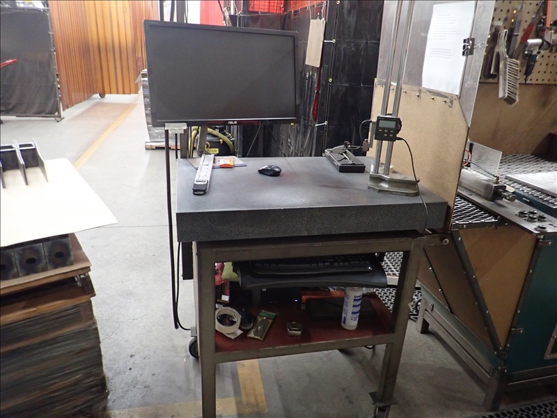 (2) INSPECTION STATIONS W/MITUTOYO HEIGHT GAUGE, GRANITE SURFACE BLOCK, STEEL TABLE, CARTS & MISC