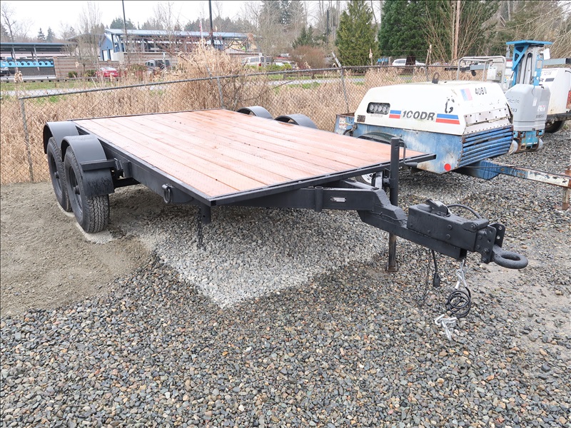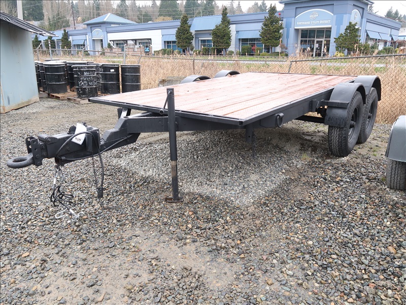 T/A 11' FLAT DECK TRAILER, SURGE BRAKES, 7.50R16