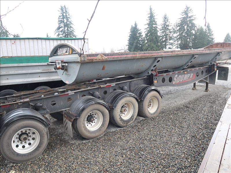 QUAD/A, 49' TOTAL OVER ALL LENGTH, 38' STEEL SIDE DUMP BOX, SIDEKICK 2 TARPING SYSTEM, PUSH BLOCK, AIR BAG SUSPENSION, 425/65R22.5