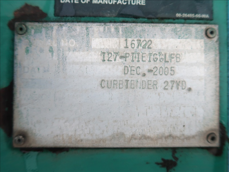 WAYNE K27 CURBTENDER ASL REFUSE COLLECTION TRUCK, CUMMINS ISM, AUTO