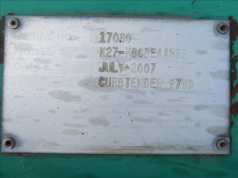CABOVER, WAYNE K27 CURBTENDER ASL REFUSE COLLECTION TRUCK, CUMMINS ISM, AUTO (MISSING LOAD ARMS)