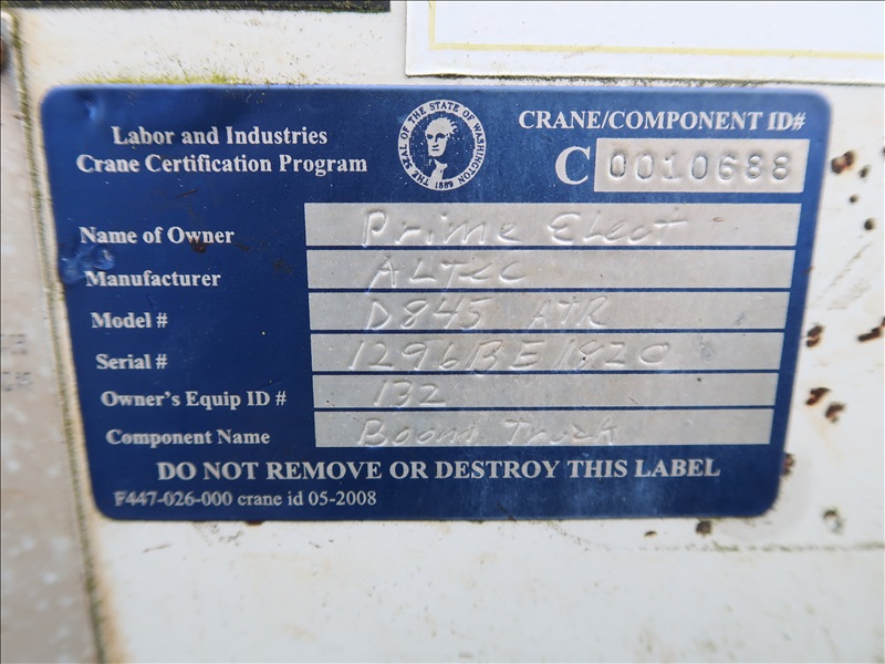 DIGGER DERRICK, ALTEC D845, AUX TOOL CIRCUIT, OUTRIGGERS, 6 CYL DIESEL, 6 SPD