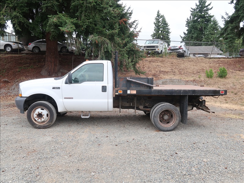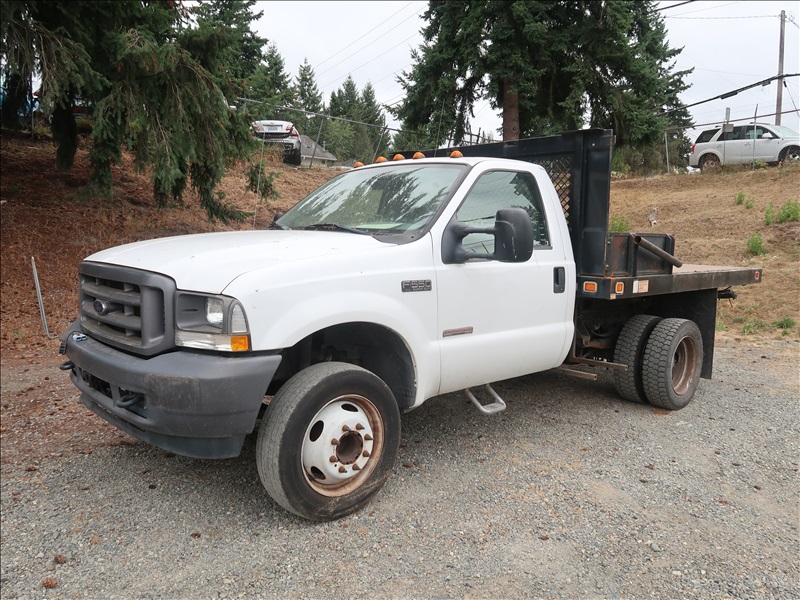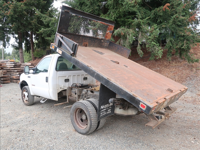 10' FLATBED DUMP, POWER STROKE, AUTO (CITY DISCLOSURE: ENGINE OIL LEAK)