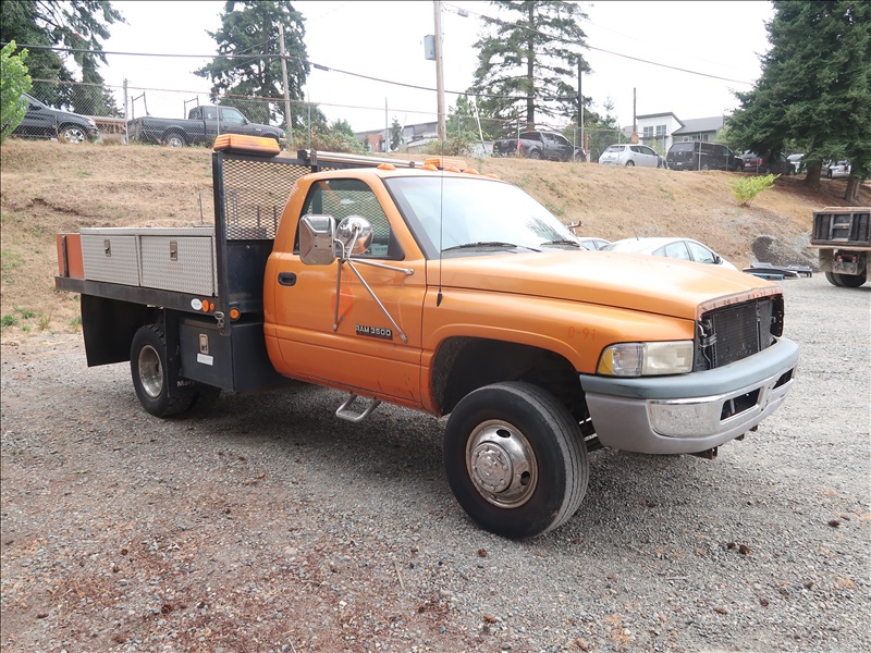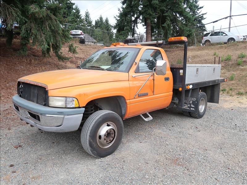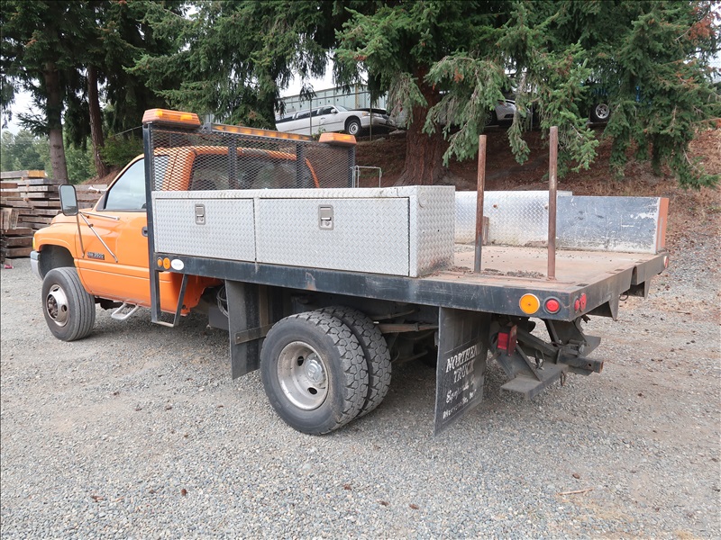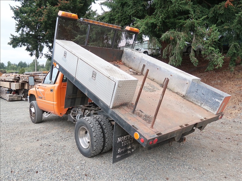 10' FLATBED DUMP, CUMMINS, AUTO (CITY DISCLOSURE: SUSPENSION & STEERING ISSUES)