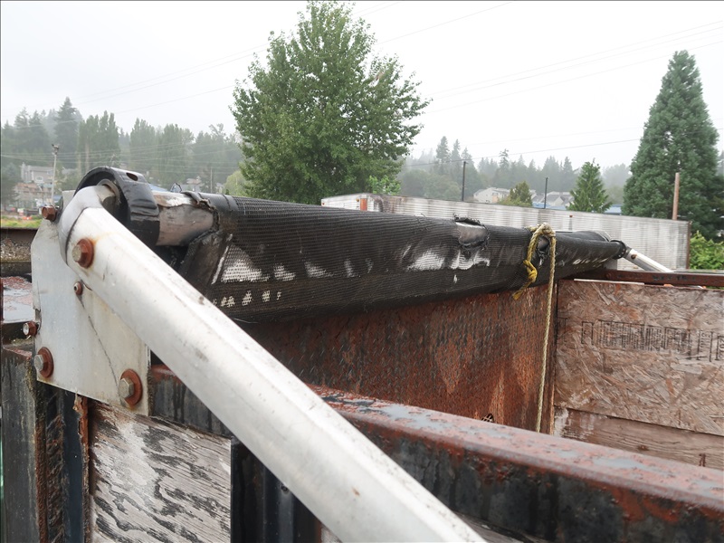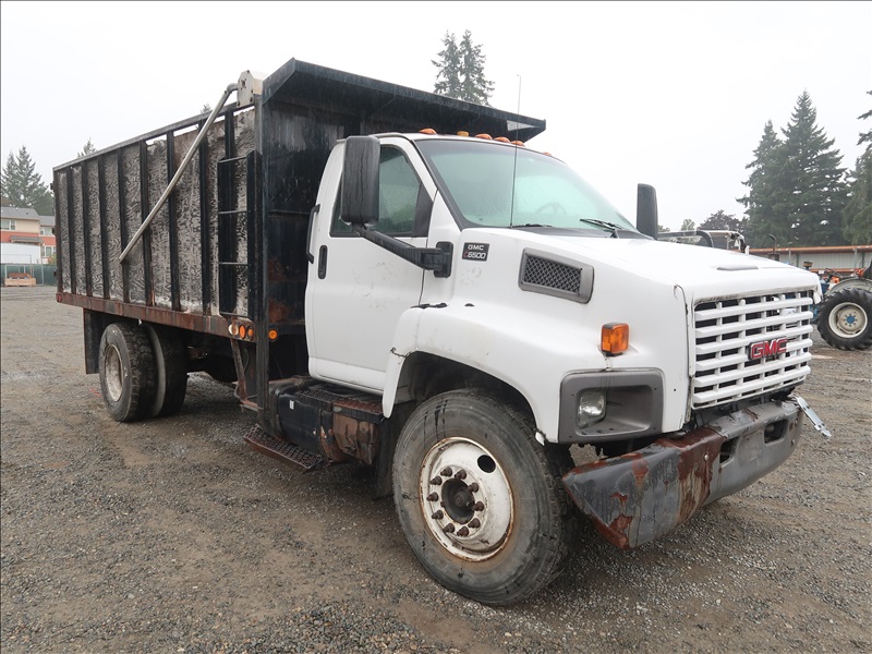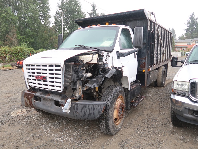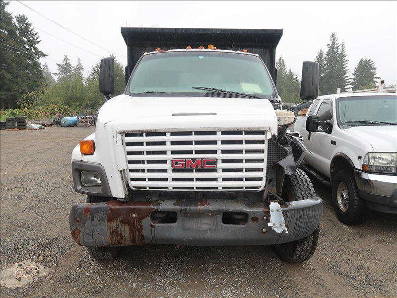 17' FLATBED DUMP, CAT C7, AUTO (NO KEYS, CONDITION UNKNOWN, FRONT END DAMAGE)