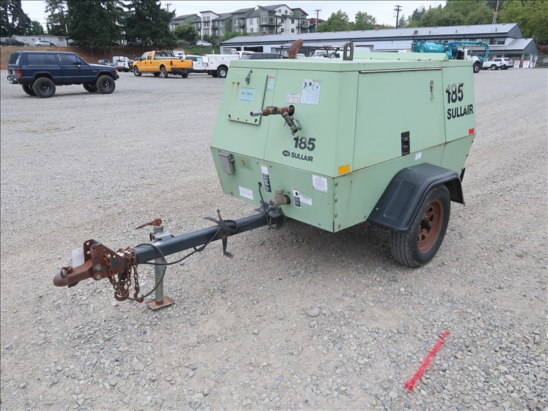 S/A 185 CFM TRAILER MOUNTED AIR COMPRESSOR, JOHN DEERE 4045DF-150B 4 CYL DIESEL, 205/75D15 (RUNS & OPERATES)