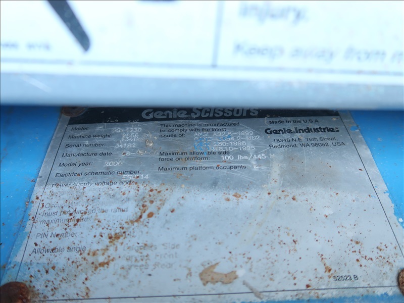 19' 500 LB SCISSOR LIFT, 24V (DOES NOT OPERATE, HOURS UNKNOWN)
