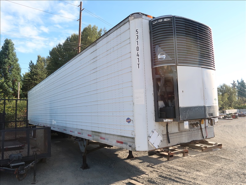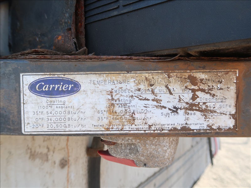 T/A 53' REFRIGERATED VAN TRAILER, 65,000 LB GVWR, SPRING SUSPENSION, A/B, CARRIER ULTRAFRESH 2DL REFRIGERATION UNIT, BARN DOORS, 295/75R22.5