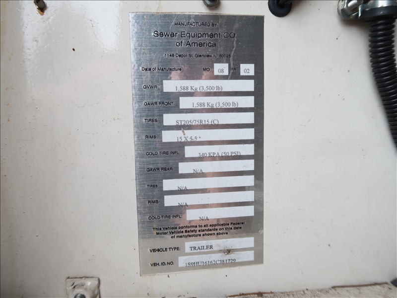 S/A SEWER RODDER TRAILER, LOMBARDINI 3 CYL DIESEL, E/B, 205/75R15 (RUNS & OPERATES)