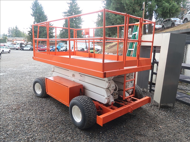 25' 1,250 LB SCISSOR LIFT, 24V W/BATTERY CHARGER (WORKS & OPERATES, HOURS UNKNOWN)