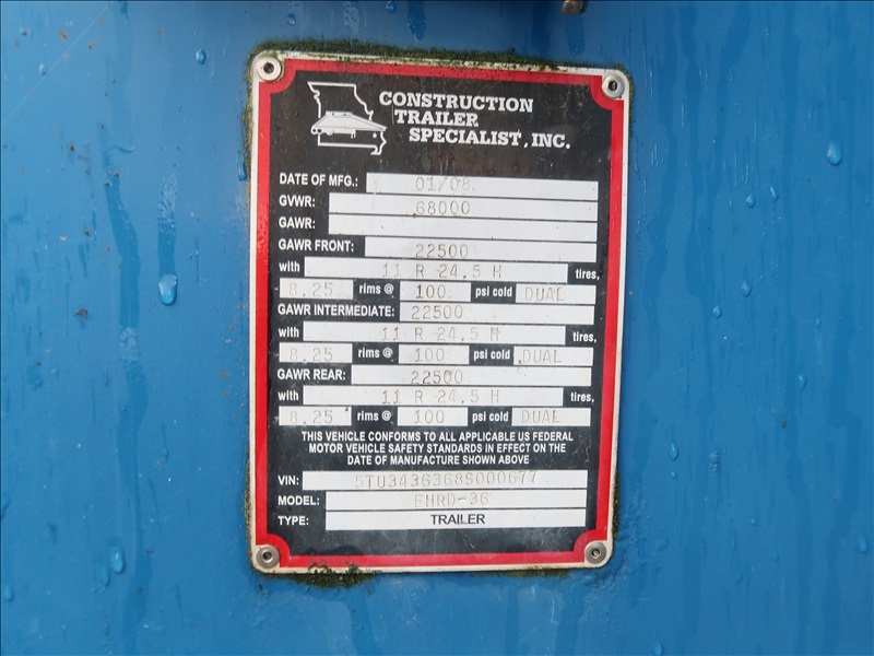 TRI/A 36' 68,000 LB GVWR END DUMP TRAILER, SWING GATE, SPRING SUSPENSION, A/B, ROLL RITE TARPING SYSTEM (INCOMPLETE), HYDRAULIC DUMP CYLINDER MISSING HOSE, 11R24.5