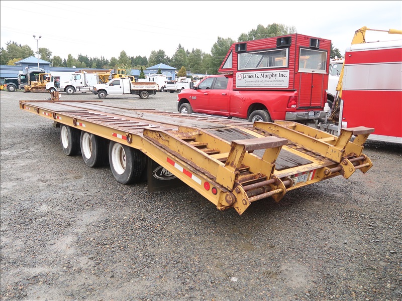TRI/A, 29' OAL BEAVERTAIL EQUIPMENT TRAILER, 24' DECK & 5' BEAVERTAIL, SPRING SUSPENSION, A/B, RAMPS, 215/75R17.5