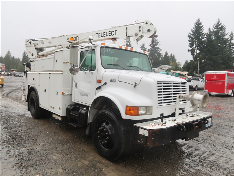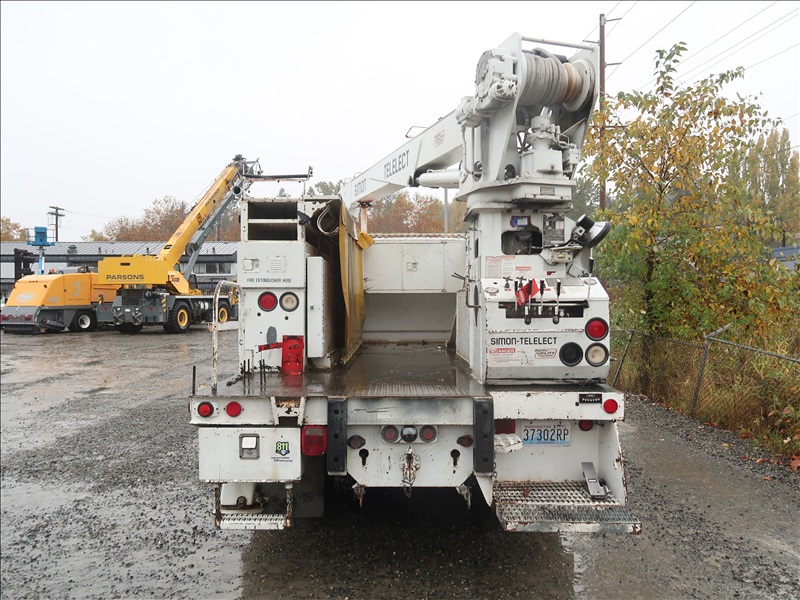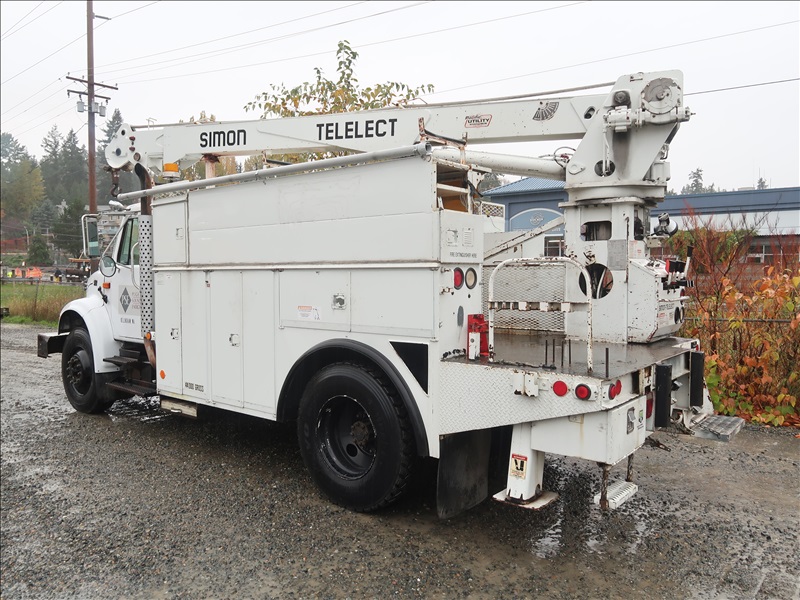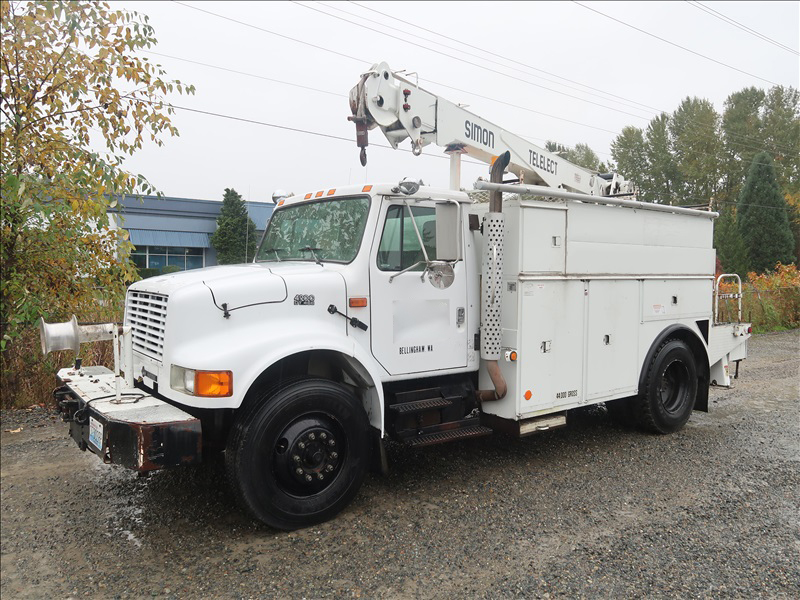 BUCKET TRUCK, SIMON-TELELECT 92-45 HYD OUTRIGGERS, DT466, 13 SPD, WINCH