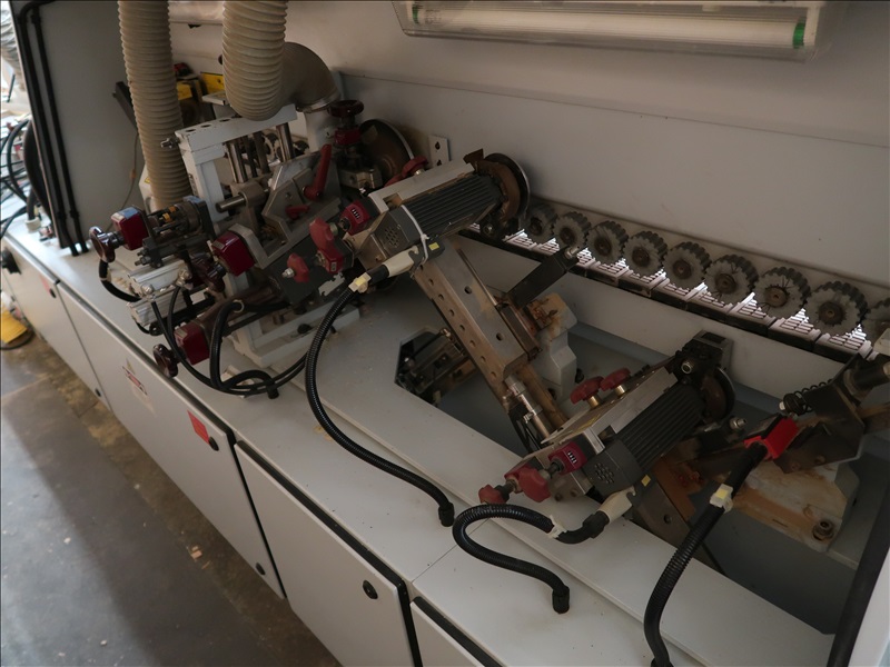 21' SINGLE SIDED EDGE BANDER, DIAMOND PRE-MILL, TWO GLUE POTS, 3MM PVC CAPABLE, BRANDT ELECTRONICS, 208/230V, 60HZ, 3-PHASE