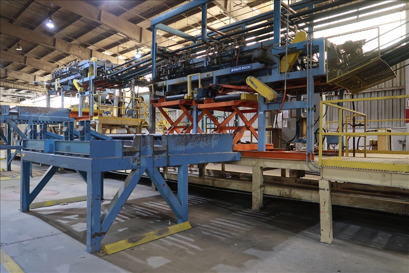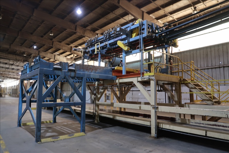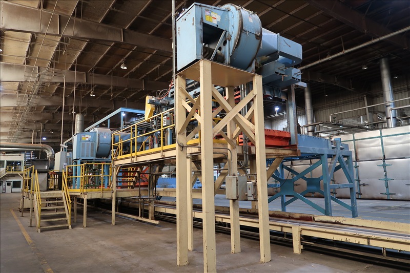 4-BIN GREEN VENEER STACKER W/FEED THRU VACUUM BELT W/(4) SERIES 20 GI FANS, (1) 60"X45" & (3) 60"X75" SCISSOR LIFTS TO 60"X110" OUTFEED GRAVITY ROLLS, SHEET DIVERTER W/(2) SERIES 20 GI FANS & INFEED BELTS