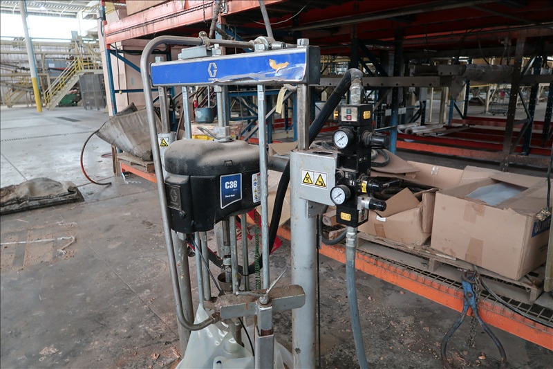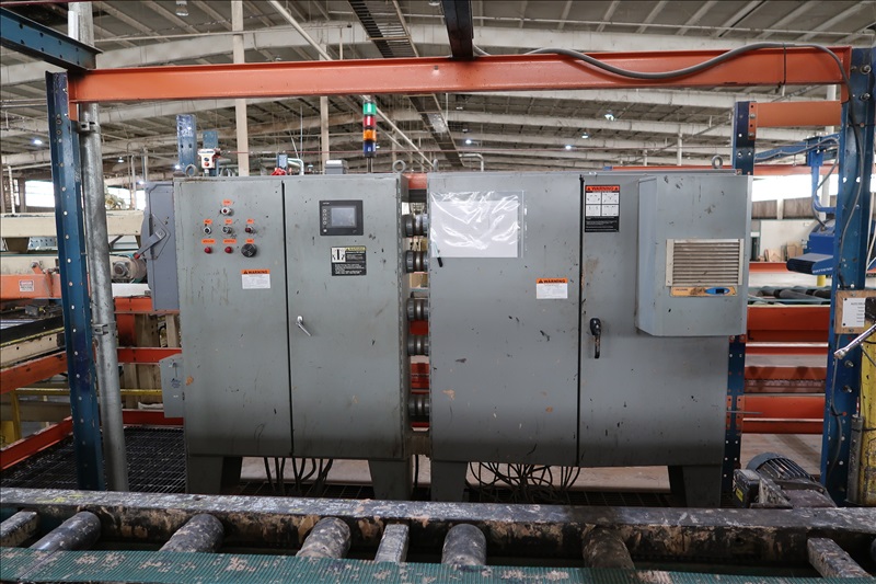 W/CTC BELT FEEDER (FROM PRESS) TO (6) 55"X10' POWERED ROLLCASES W/BELTS, CORNER BELT TRANSFER W/(4) PATERSON FANS TO (6) APPROX 55-1/2"X10' POWERED ROLLCASES W/(2) CORNER UNITS TO (2) 55"X10' POWERED ROLLCASES (TO DRYING RACK), (4) AERO PUMPS, CENTRIC PNEUMATIC BUCKET PUMP, GRACO C36-2000 CHECK MATE PNEUMATIC PUMP, (24) ALLEN BRADLEY PF-4, 2 HP VFD'S