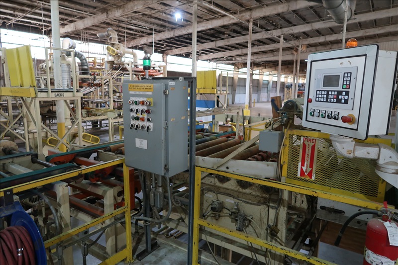 64" TOP HEAD SANDER W/(3) STEEL ROLLS, STEEL PLATEN, BRUSH, 60 KW MOTORS, 66" FEED THRU BELT W/DRIVE, BELT TRACKING, PNEUMATIC TENSIONING, SANDING SHOES, SWING ARM CONTROLS, INFEED TRANSFER, ROLLS & BELT