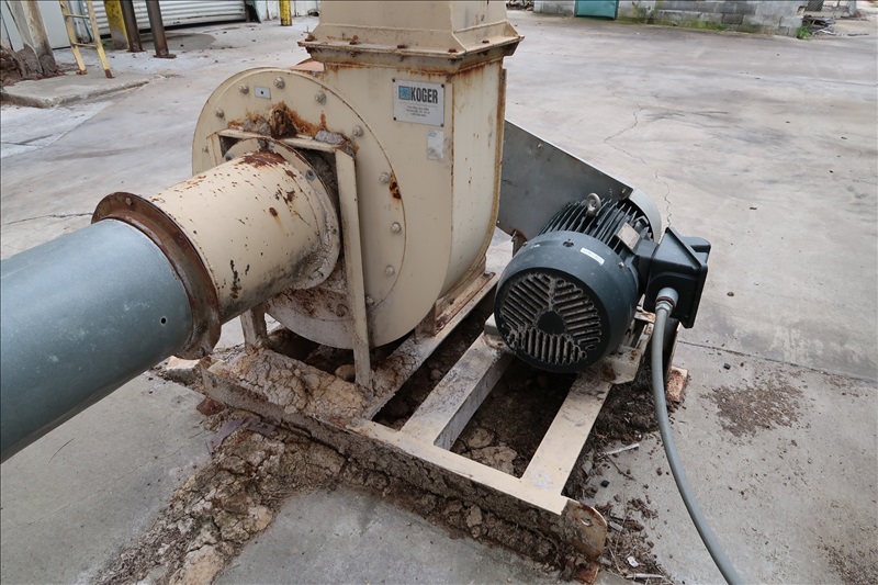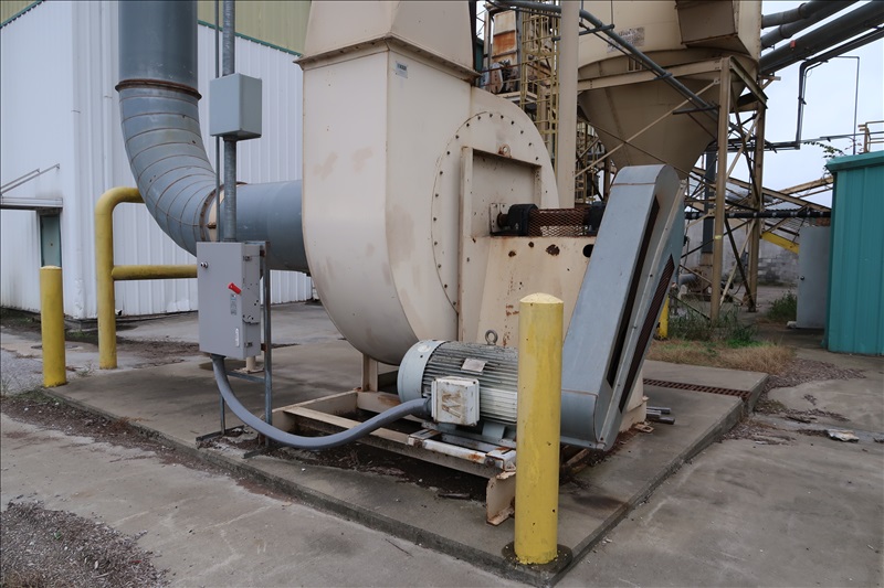 CONTINUOUS REVERSE AIR CLEANING SYSTEM, 6,163 SQ FT CLOTH W/AIR TO CLOTH RATIO OF 6.65:1 = 41,000 SCFM, CAN VELOCITY 248 FPM, 25 HP DIRECT DRIVE ALUMINUM CLEANING HEAD, (425) 5"X12' CAGES, (11) ALUMINUM EXPLOSION VENTS, KOGER CW UPBLAST SIZE 41 FAN W/250 HP MOTOR, BENSHAW RBX-1-S-302A-15C STARTER, KOGER CWLP SIZE 31 FAN W/30 HP MOTOR, AMW APPROX 24" BLOWER W/40 HP MOTOR, KOGER & AMW ROTARY AIR LOCKS, CLARKES CM41 HIGH SPEED ABORT GATE, CLARKES CXC-1 SPARK DETECTION & EXTINGUISHING SYSTEM