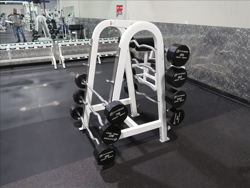 ASSORTED 60LB-100LB BARBELLS W/RACKS