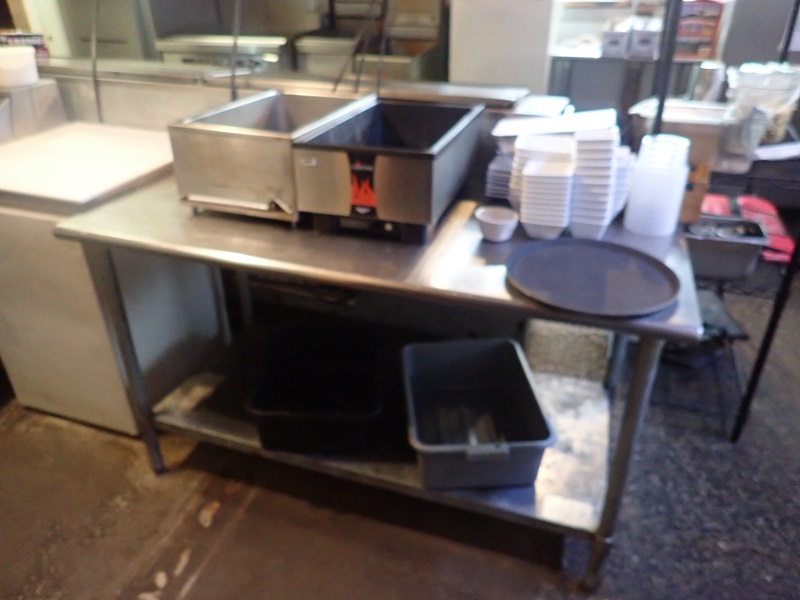 GROUP OF S/S TABLE W/(2) WARMERS, SHEET PANS & MISC. KITCHEN SUPPLIES
