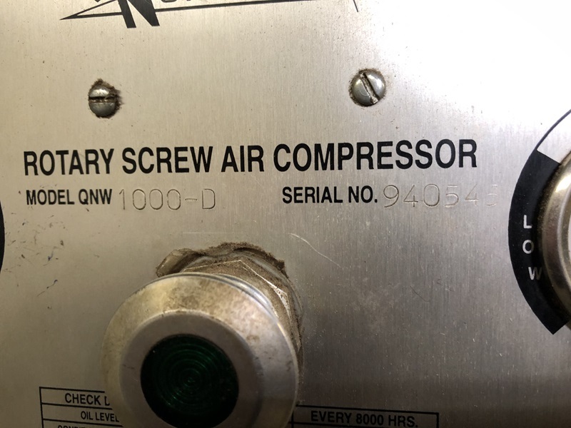 ROTARY SCREW AIR COMPRESSOR, 1000 CFM, 200 HP MOTOR, AIR COOLED
