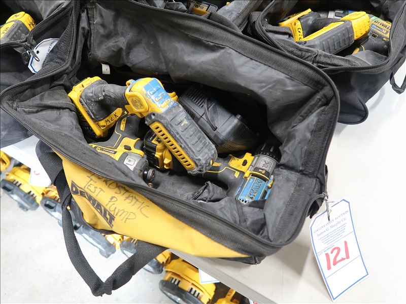 LOT, DEWALT DCD996 20V CORDLESS 1/2" HAMMERDRILL/DRILL DRIVER DCF887 1/4" IMPACT DRIVER, DCL050 WORK LIGHT W/BATTERIES, CHARGER & BAG