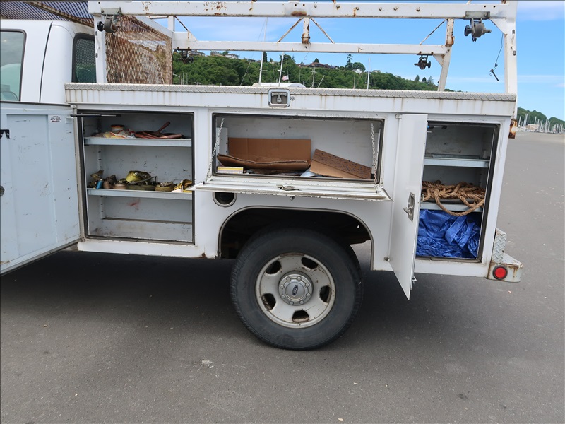 QUAD CAB 4X4 SERVICE BODY, V8 DIESEL, AUTO, SE SERVICE BODY BOX, PIPE RACK, ODOMETER READS: 159,620