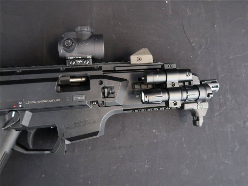 9X19 RIFLE W/TRIJICON RED DOT, LASER, LIGHT, & FOLDING STOCK (NO MAGAZINE) (CLASSIFIED AS PISTOL)