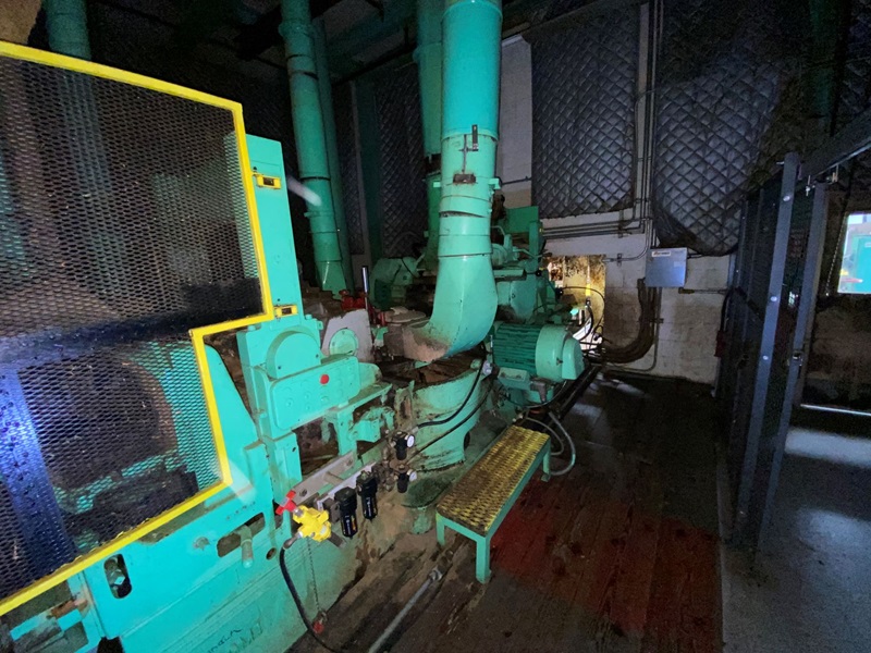 PLANER & MATCHER, 6"X15" CAPACITY, (6) HEADS, 18-KNIFE, 125 HP TOP HEAD, 75 HP BOTTOM HEAD, APPROX. 60 HP LEFT SIDE HEAD, 40 HP RIGHT SIDE HEAD, 30 HP TOP PROFILE, 60 HP BOTTOM PROFILE, (4) HYDRAULIC DRIVEN INFEED & (2) HYDRAULIC DRIVEN OUTFEED ROLLS, WATER COOLED LINE BAR, HYDRAULIC UNIT W/(2) 50 HP PUMPS, (1) 5"X18-KNIFE SPARE, (1) 4"X18-KNIFE, (6) 2"X18-KNIFE, (3) 5"X12-KNIFE & (2) 4"X12-KNIFE SPARE HEADS, (20+/-) PALLETS OF ASSORTED SPARE PARTS (PLANER MILL)
