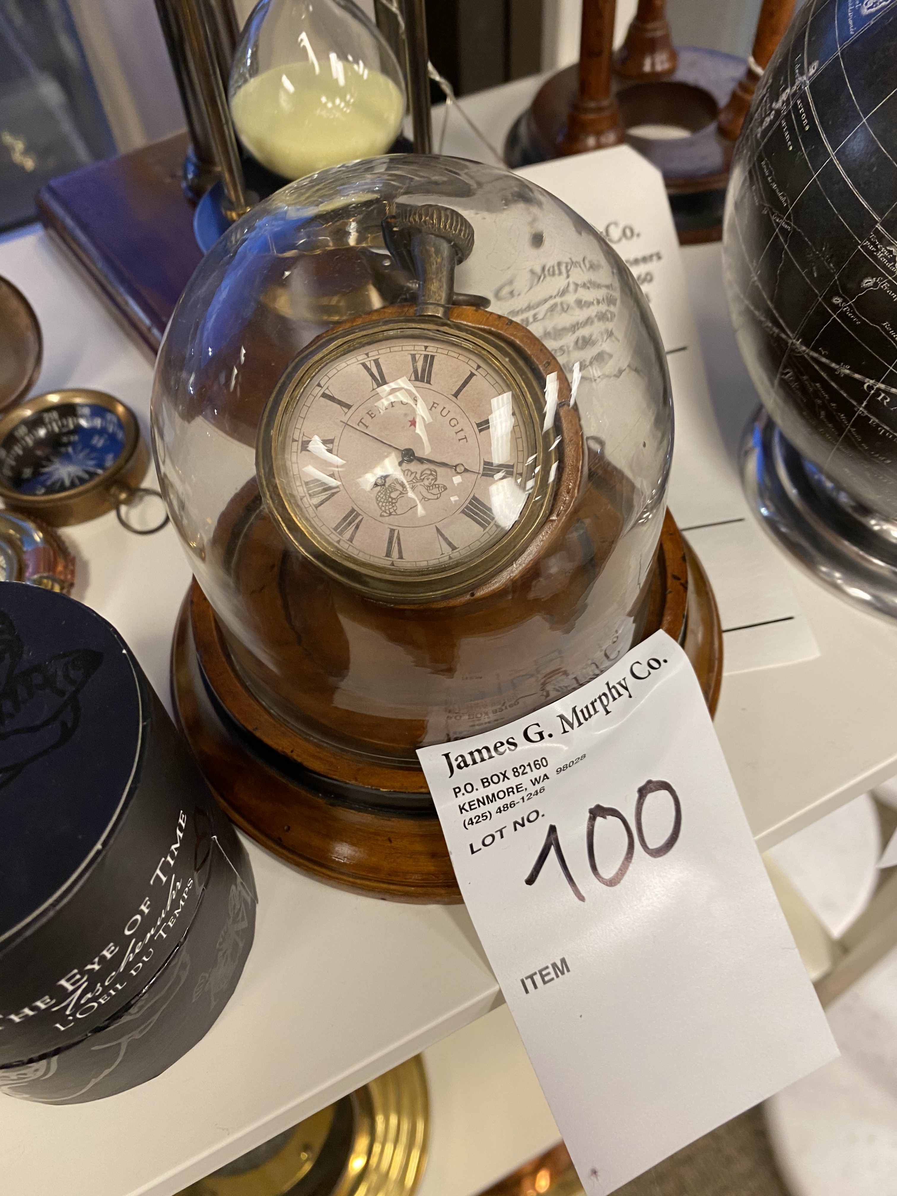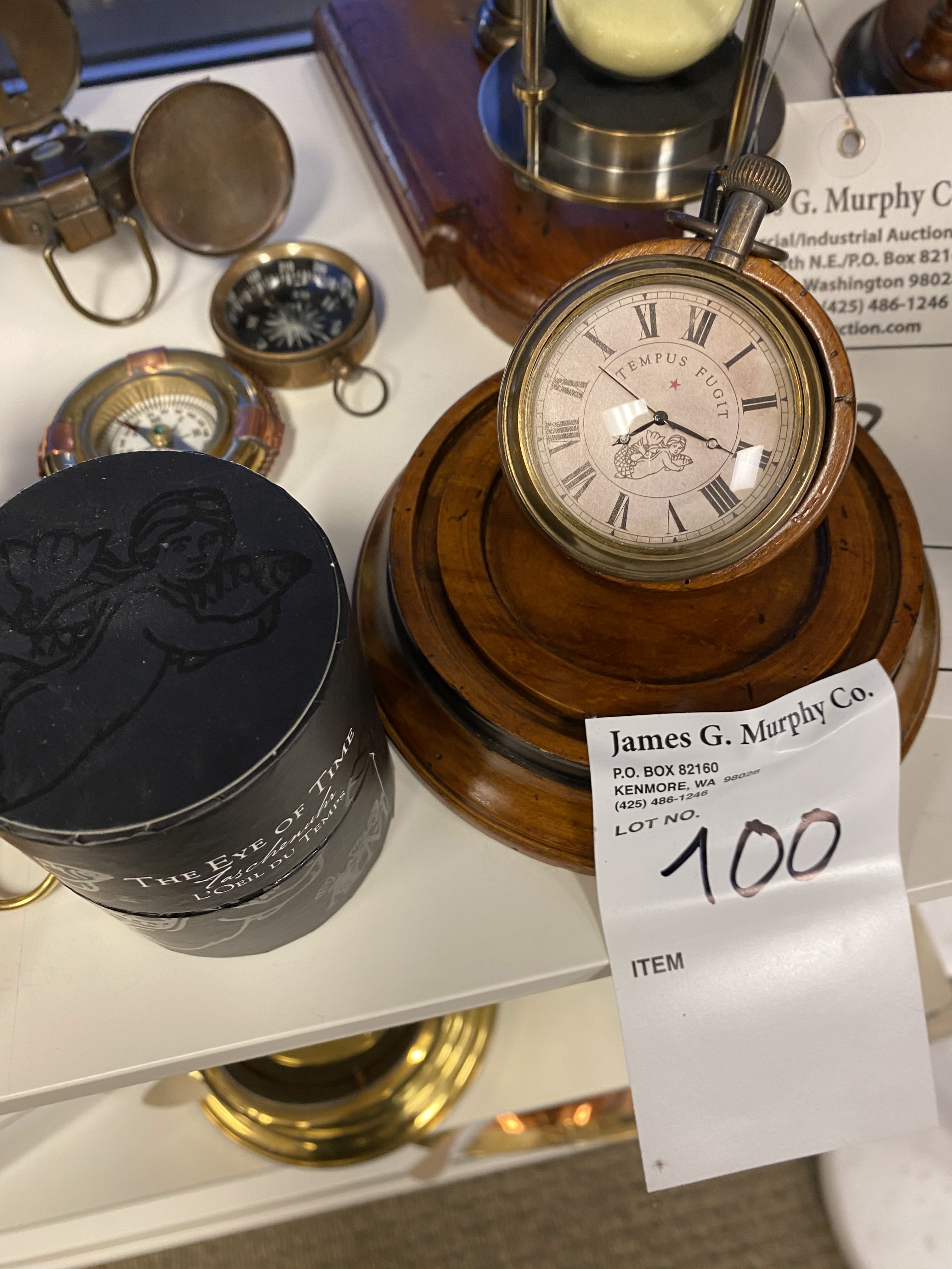 Clock on round wooden base Approx. 5.5" Dia x 5" H