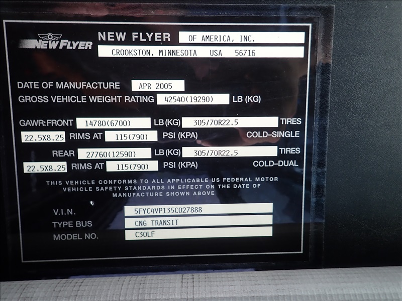 25-PASSENGER KNEELING BUS, CUMMINS 8.3L CNG, HOUR METER READS: N/A (NO FARE COLLECTORS, RADIOS OR CAMERA SYSTEM)