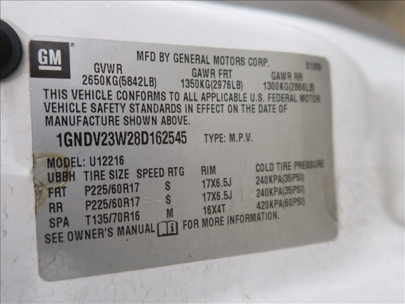 5-PASSENGER VAN, 6 CYL, AUTO, A/C, CRUISE, TILT, P/WDW, P/SEAT, P/LOCK (CONSIGNOR DISCLOSURE: LOW COMPRESSION CYL NO 2)
