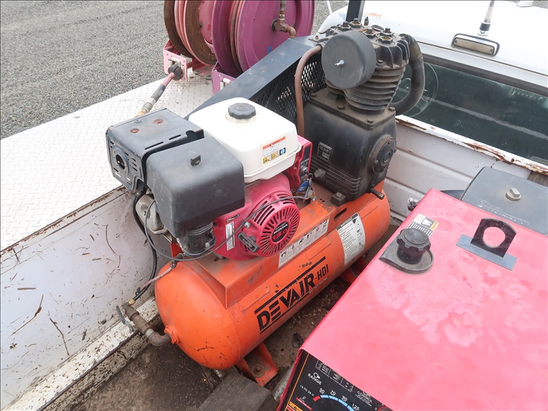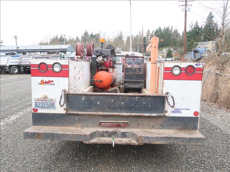 SERVICE BODY, LINCOLN RANGER 8 WELDER, DEVAIR AIR COMPRESSOR, CRANE, V8, 4 SPD