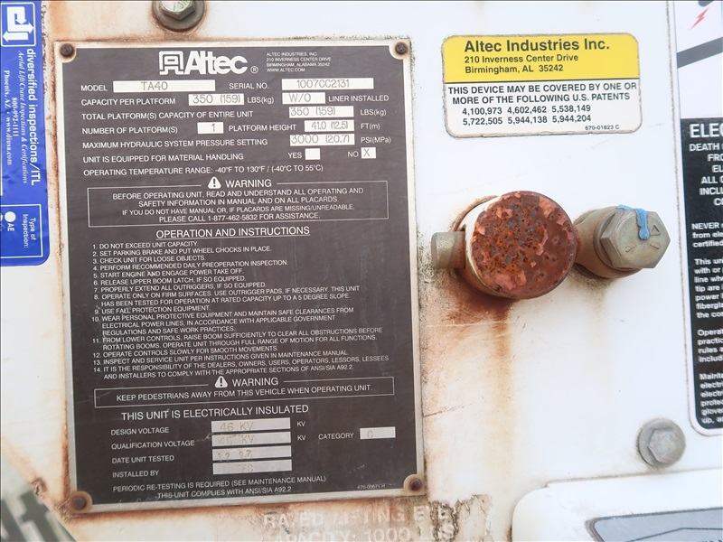 T/A DAY CAB, 225 HP MAXXFORCE DT GDT225, AUTO, ALTEC TA40, 350 LB CAP, PLATFORM HEIGHT 41'