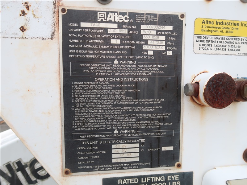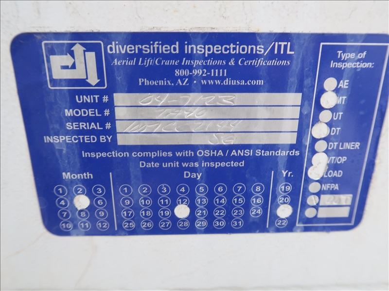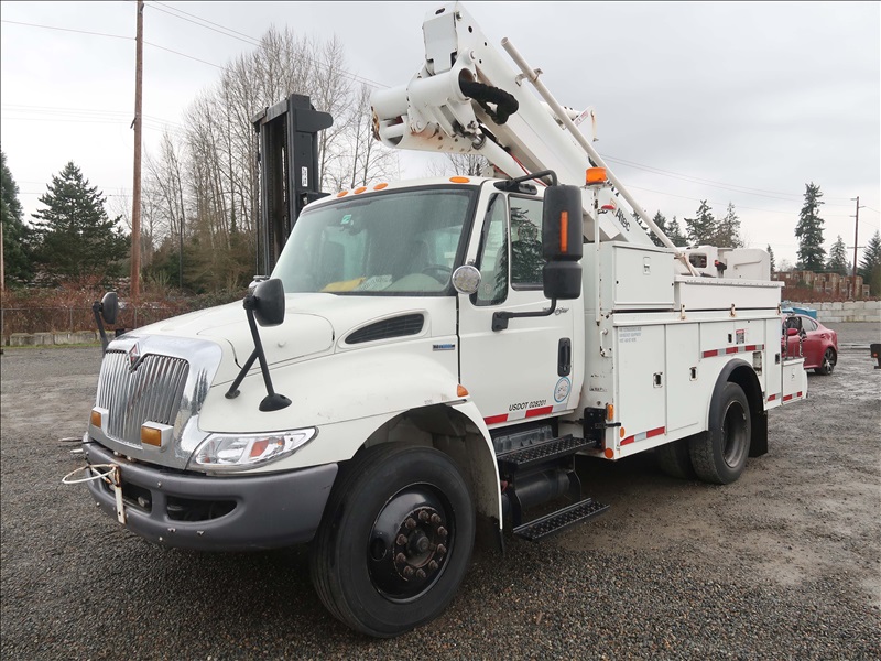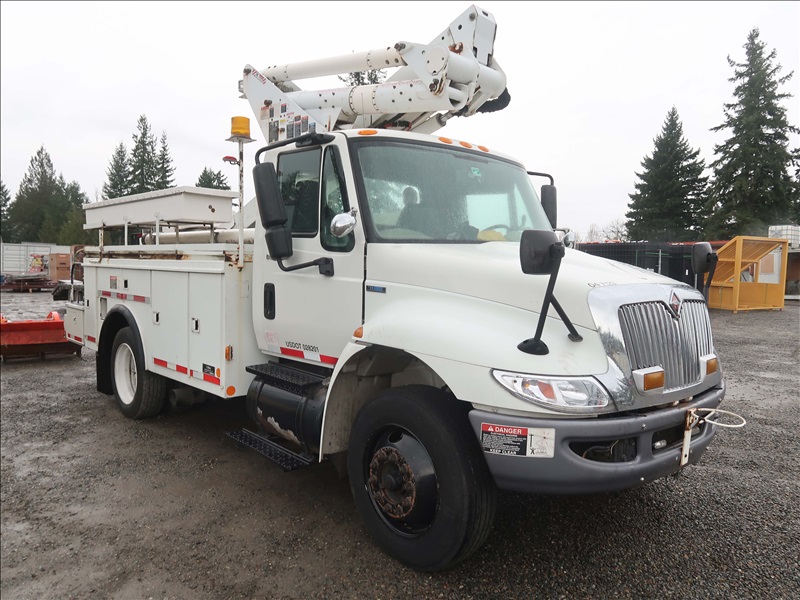 DAY CAB, BUCKET TRUCK, 225 HP INTERNATIONAL GDT225, AUTO, ALTEC TA40 350 LB, 41' REACH MAN BASKET (ENGINE TAKEN APART, DOES NOT RUN, PLEASE PREVIEW)