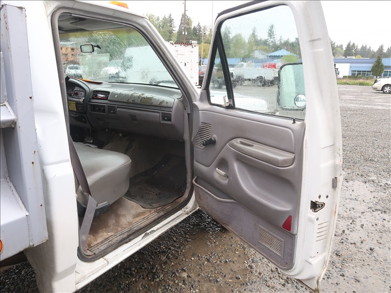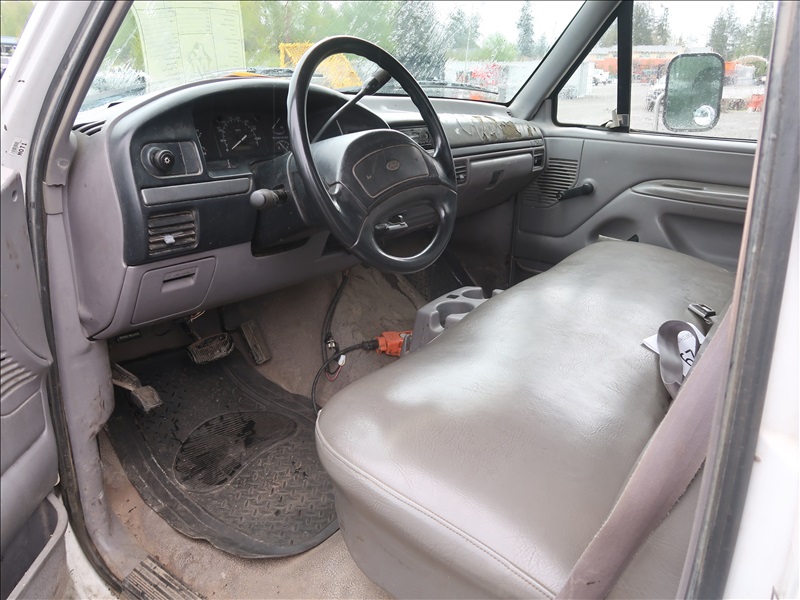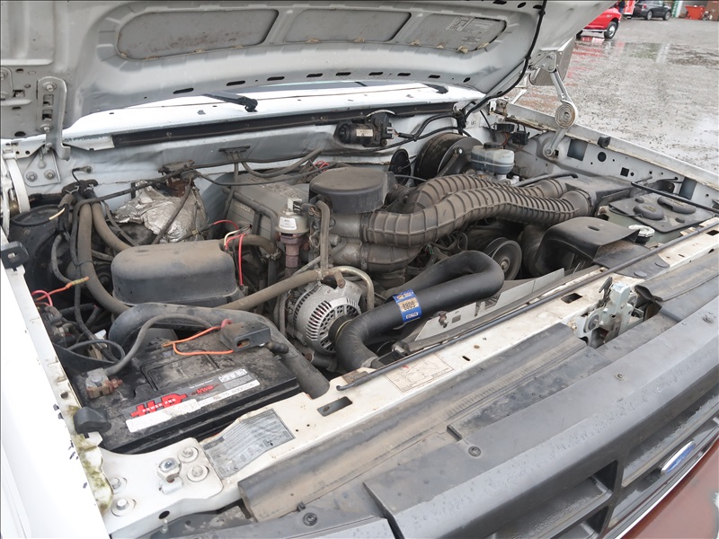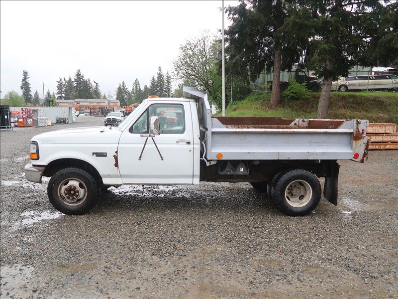 DUMP TRUCK, 7' STEEL BOX, V8, AUTO (DRIVER DOOR NEEDS REPAIRS)