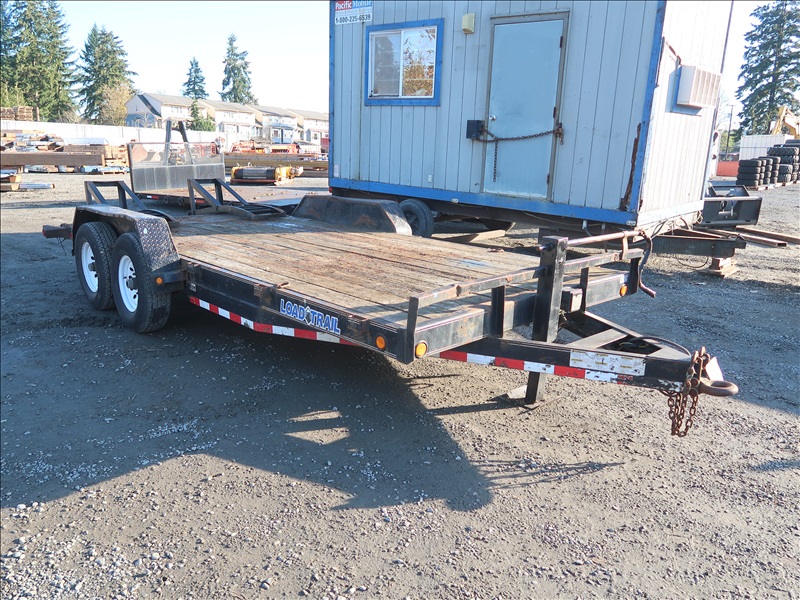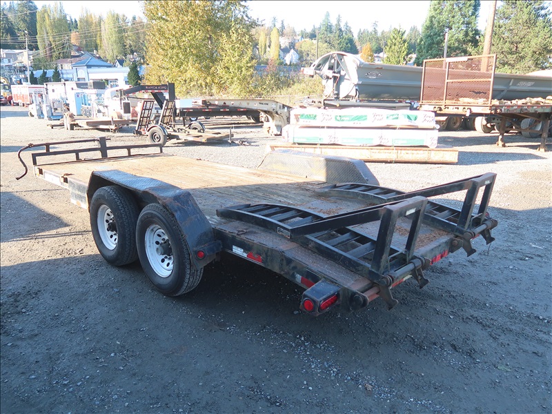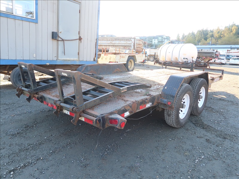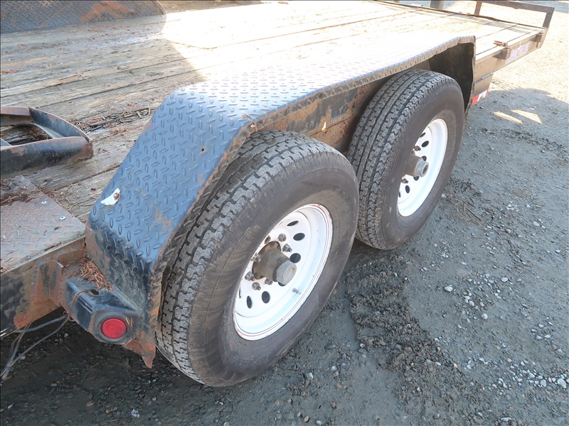 T/A, 18' X 83" BEAVERTAIL FLATBED TRAILER, SPRING SUSPENSION, ELECT BRAKES, RAMPS, 238/80R16