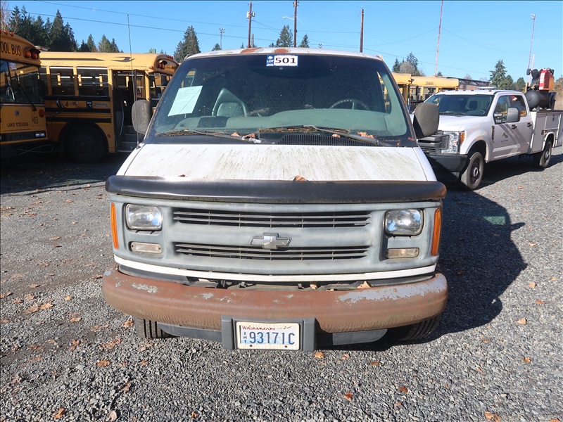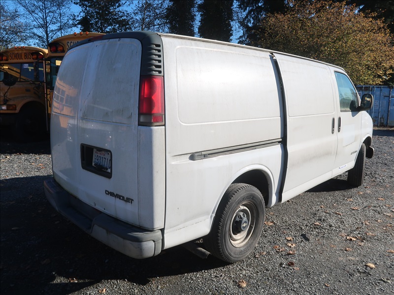 CARGO VAN, V8, AUTO, P/LOCK (NEEDS FUEL PUMP, CATALYTIC CONVERTER MISSING(TO BE SOLD IN ABSENTIA LOCATED IN LAKE STEVENS WA, FOR PREVIEW PLEASE EMAIL Vince_Santeford@lkstevens.wednet.edu TO SCHEDULE APPOINTMENT FOR PREVIEW. THE SITE WHERE THE ITEMS ARE STORED IS NOT OPEN TO THE PUBLIC WITH OUT PRIOR APPOINTMENT. )
