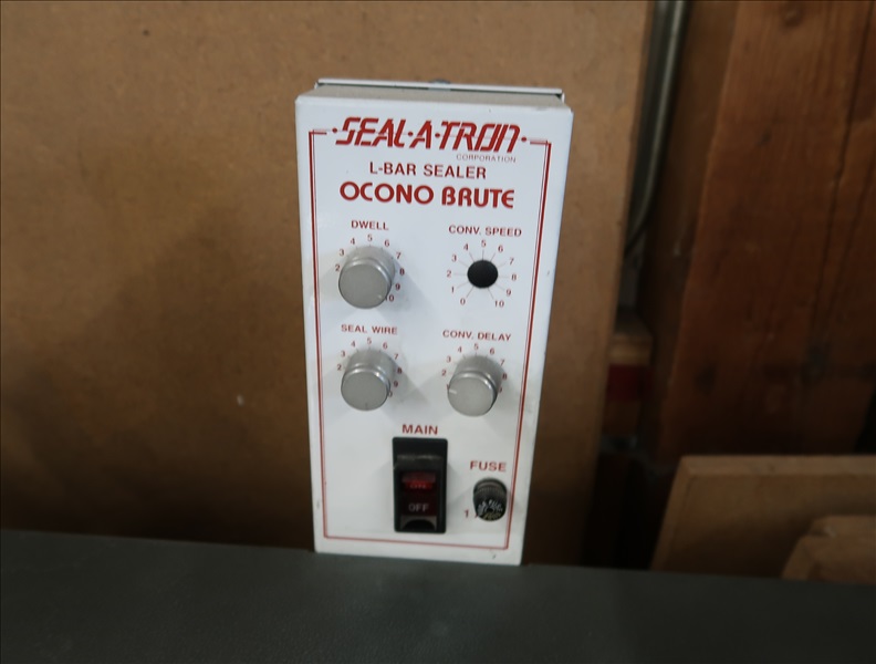 SHRINK TUNNEL MACHINE, 13" WIDE, SEAL-A-TRON OCONO BRUTE L-BAR SEALER, 208/240 VAC