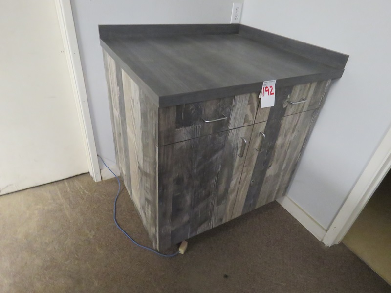 35" X 30" X 36" 2-DOOR/2-DRAWER CABINET W/DECORATIVE WOOD SIDING (MATCHES LOTS 190 & 191)