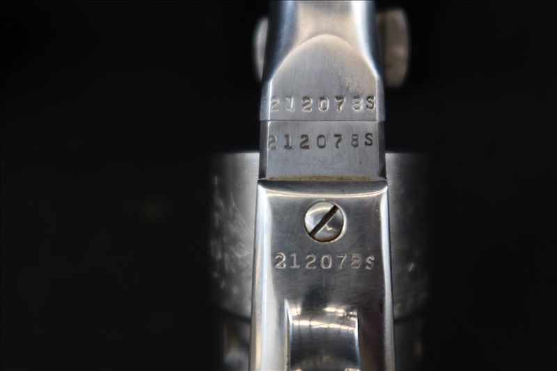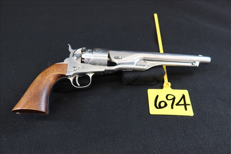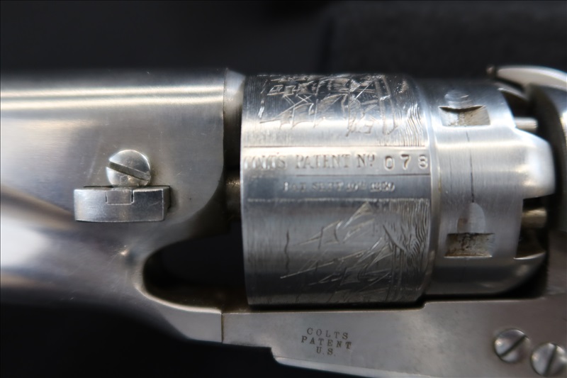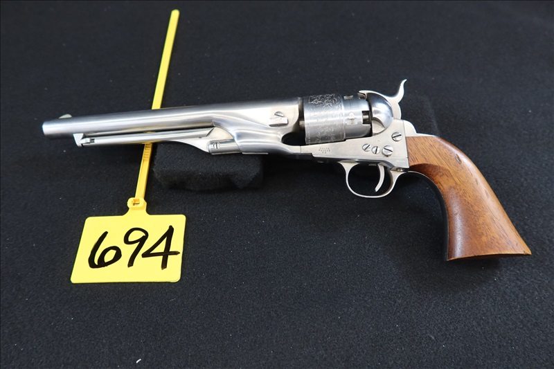 .44CAL, STAINLESS SIX SHOT PERCUSSION REVOLVER W/ ENGRAVEDCYLINDER
