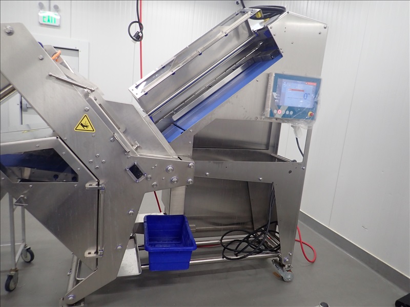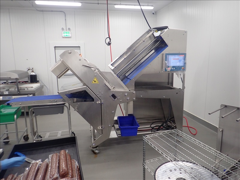 AUTOMATED MEAT SLICER, TOUCH SCREEN CONTROLS, OUTFEED BELT CONVEYOR, S/N: 21138